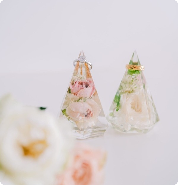 式当日の思い出をそのまま閉じ込めたような素敵なアフターブーケです。 式前にブーケ1つだけ残そうと注文しておきました。 お花が大きく、入るか心配でしたが希望通りのお花を入れてくださいました。 葉っぱやお花の先端がちょっとだけ飛び出ている部分もありましたが、樹脂はしっかり付いています。 その飛び出した部分があることで、閉じ込めたお花に触れるような気がして私は気に入っています。 丁寧に対応していただきありがとうございました。一生の宝物です。